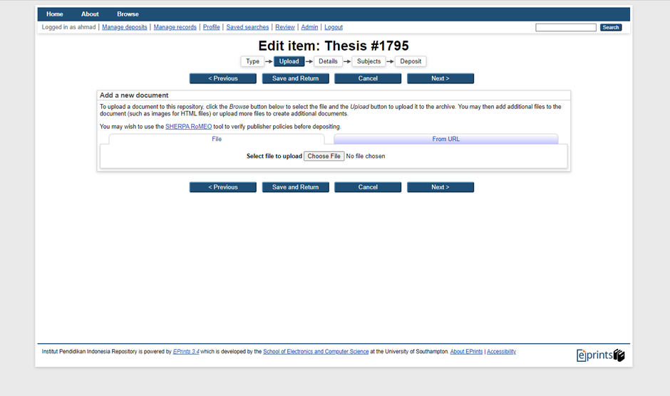 2. Selanjutnya Login ke Eprint dengan akun yang sudah di sediakan